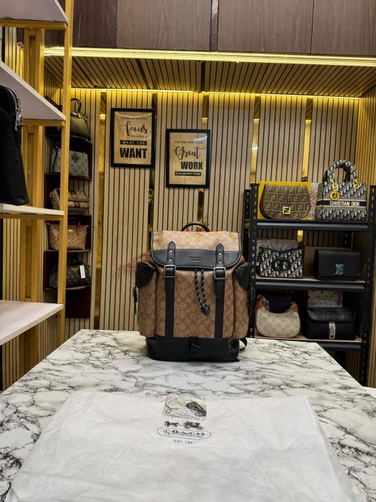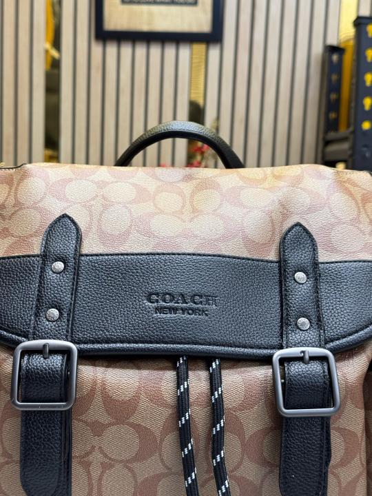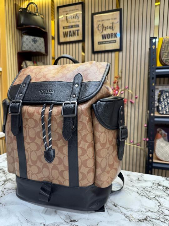 Covered in our new Empire Signature Logo print, the Hudson backpack is one of our most versatile styles. The sleek silhouette is ideal for hands-free commutes and hectic travel days alike, and it boasts plenty of room for your laptop and all the essentials, including a front zip pocket for stowing your phone. It’s finished with a top handle and an adjustable shoulder strap.