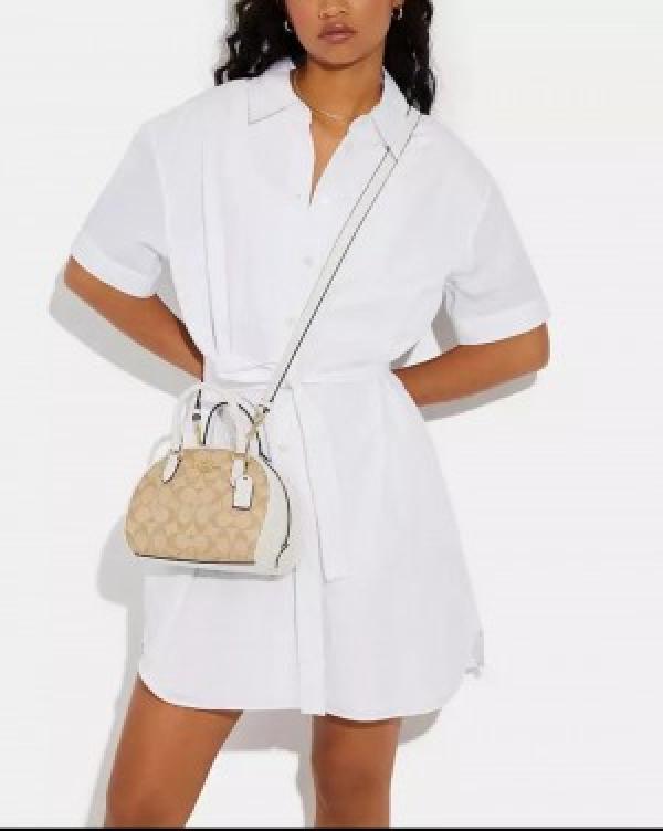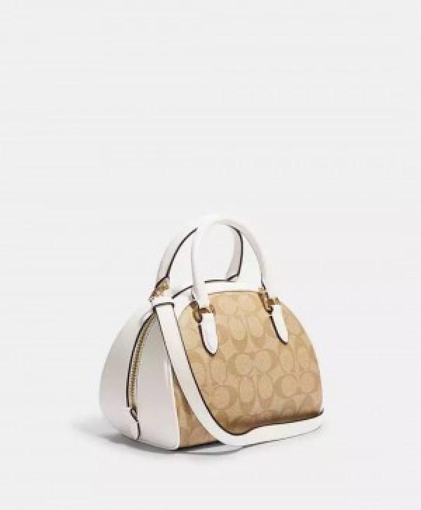 Elevate your everyday look with this timeless Coach handbag, crafted in the brand's iconic Signature coated canvas with refined leather trim. Featuring a structured silhouette and versatile shoulder strap, it combines modern functionality with classic elegance. The bag includes a spacious interior with a zip pocket and slip compartments, perfect for keeping your essentials organized. Finished with polished gold-tone hardware and the Coach logo for a refined touch, this piece is a staple accessory for the stylish woman on the go.