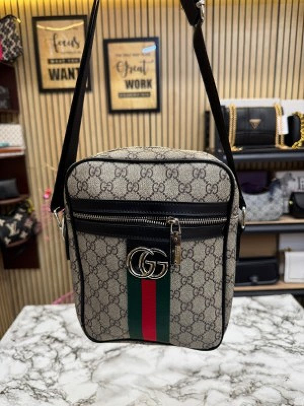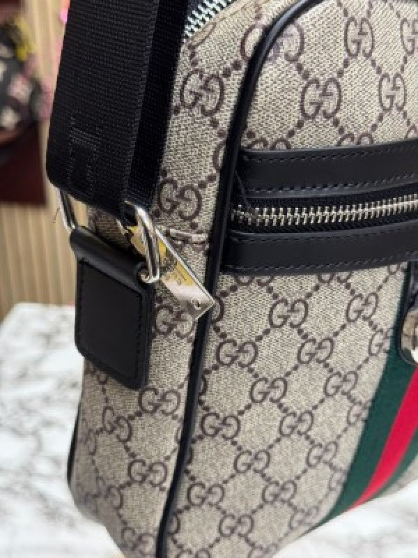 The Ophidia collection evokes the House’s heritage with the signature Web stripe and Double G emblem in light gold-toned finish. The styles are crafted from soft GG Monogram coated fabric, featuring green cotton lining inside.