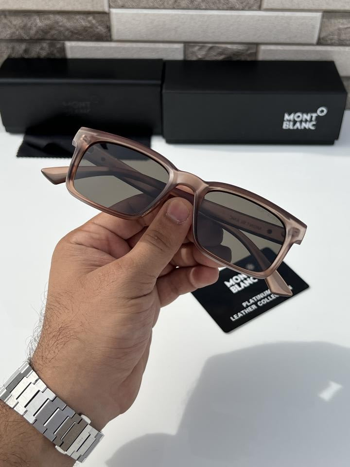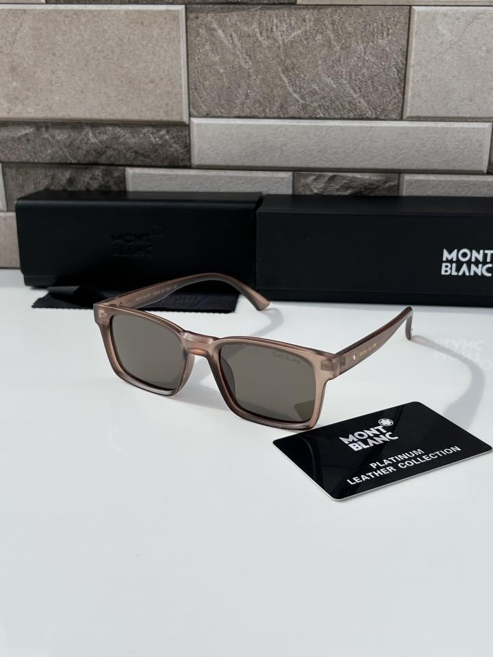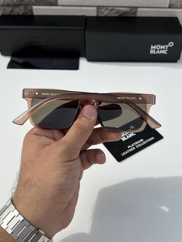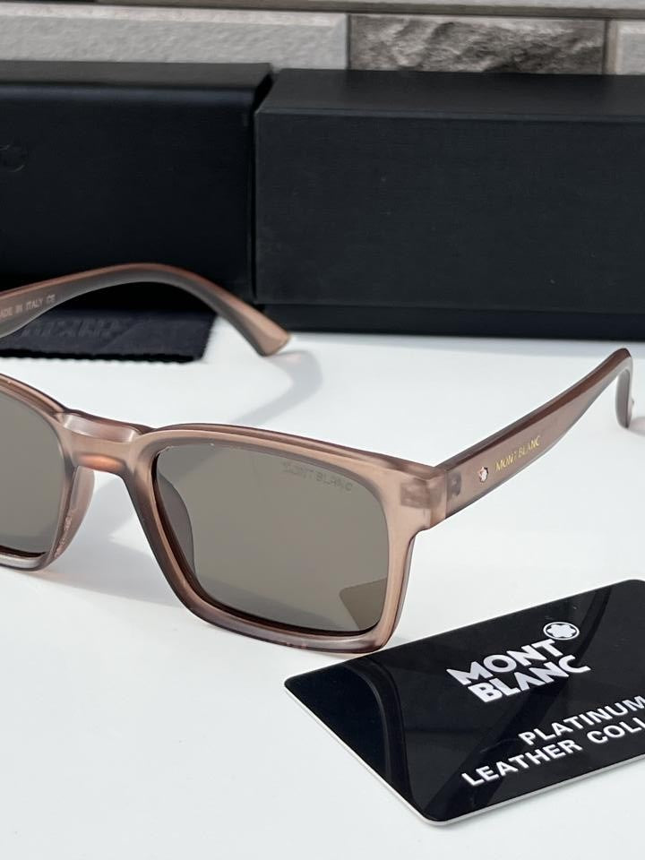 These sunglasses in a round style have a gold-coloured metal frame and brown lenses. Inspired by the nib design of the writing instruments, a decorative nib detail is featured on the metal temple design. The Montblanc one-line logo is engraved on the right side of the temple, the logo is also lasered on the left lens and a decorative detail is engraved on the end tips of the temple.