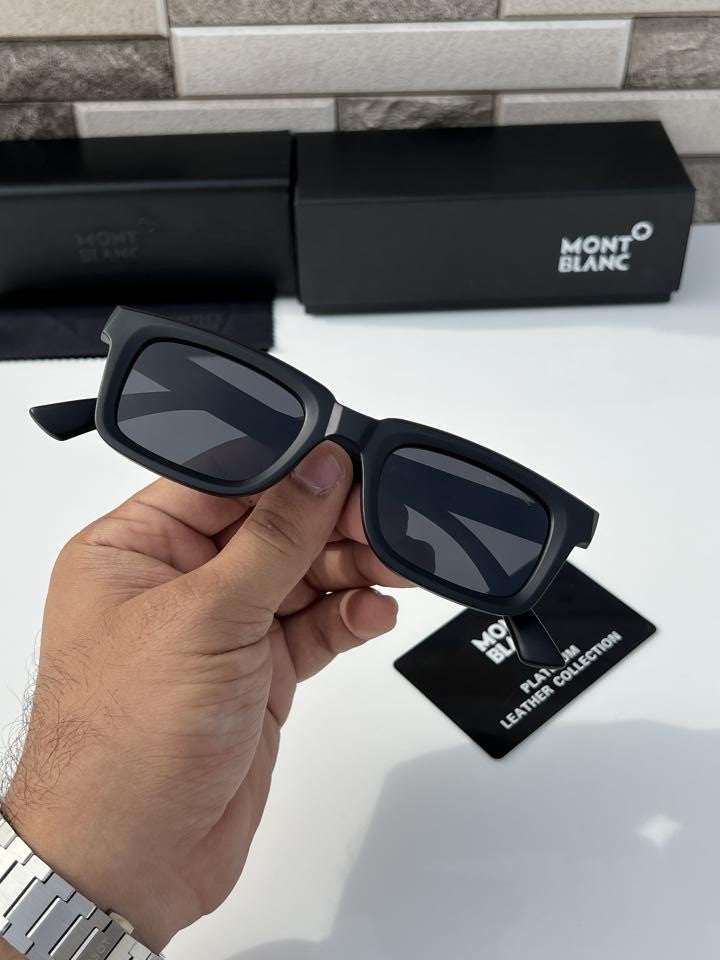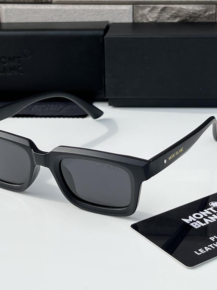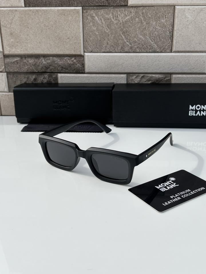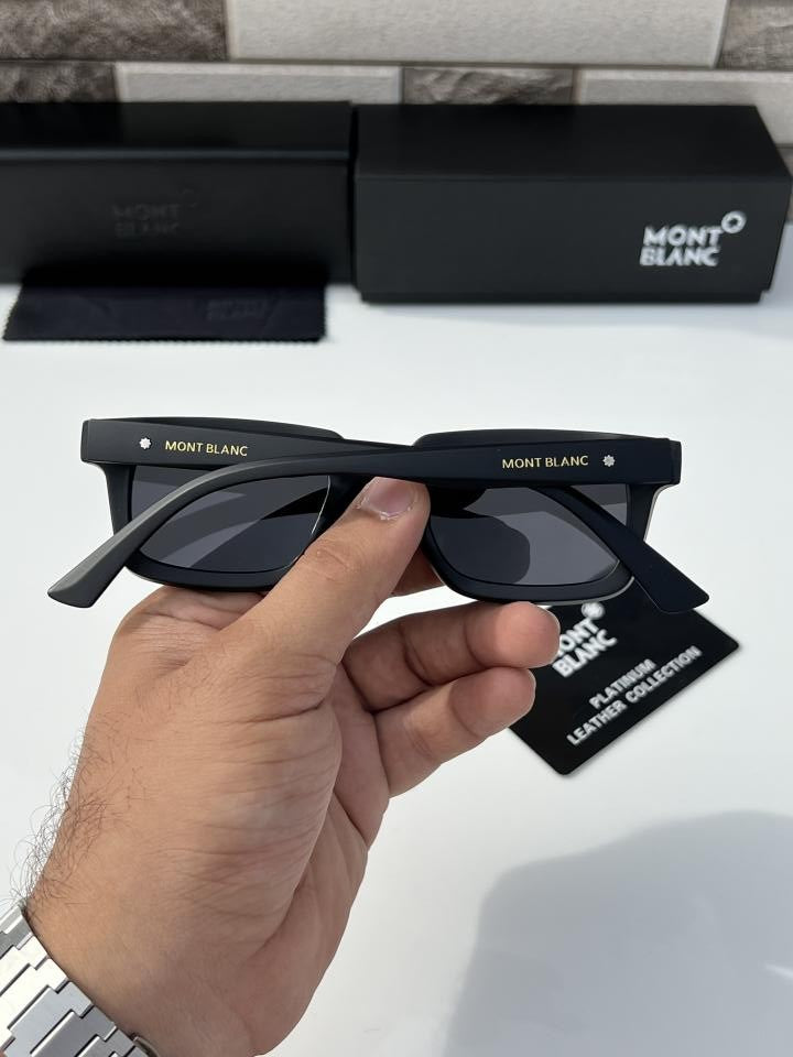 These sunglasses in a rectangular style and bold shape have a black acetate frame and grey lenses. The rivets on the front feature a snowcap detail and the Montblanc Extreme 3.0 pattern is incorporated on the inside of the temple design. The Montblanc Emblem is encapsulated in the temple design. The Montblanc logo is lasered on the left lens and the anti-slip pattern is lasered onto the interior of the temple tips to increase comfort.