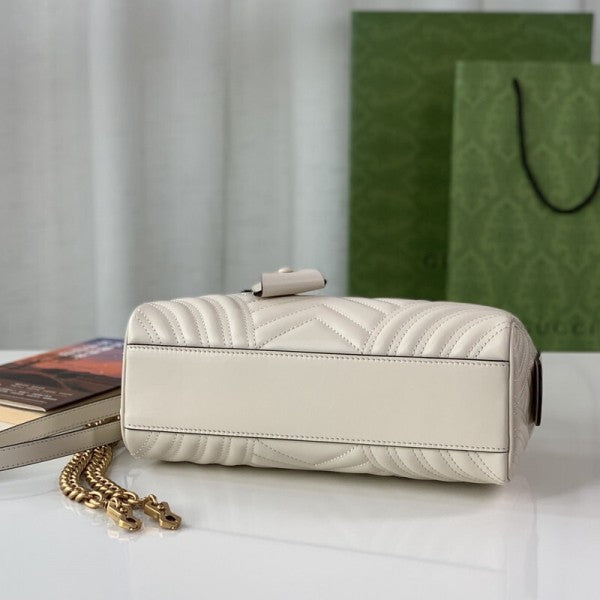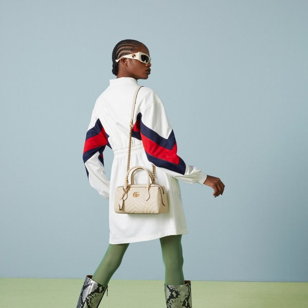 The GG Marmont, a signature collection of the House, features the Double G hardware, a faceted chain strap, and soft construction in an exceptionally supple leather. This mini bag is complete with the archival logo, first introduced in the 1970s.